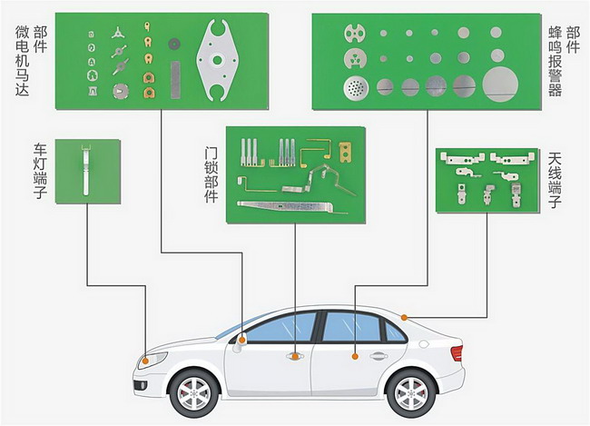 五金沖壓件:指的是在室溫條件下,鋼/有色金屬等板材用模具,由壓力機(jī)提供加工所需壓力而成形為指定形狀,一般應(yīng)用在電子器件(無人機(jī)、照相機(jī)、攝像機(jī)、電機(jī))、汽車配件、裝飾材料等等。我們通常說的沖壓件一般是指的是冷沖壓零件 ,舉個(gè)例子,一塊鐵板,想把它變成個(gè)快餐盤,那就得先設(shè)計(jì)一套模具,模具的工作面就是盤子的形狀,用模具壓這鐵板,就變成你想要的盤子了,這就是冷沖壓,就是直接用模具對(duì)五金材料進(jìn)行沖壓。